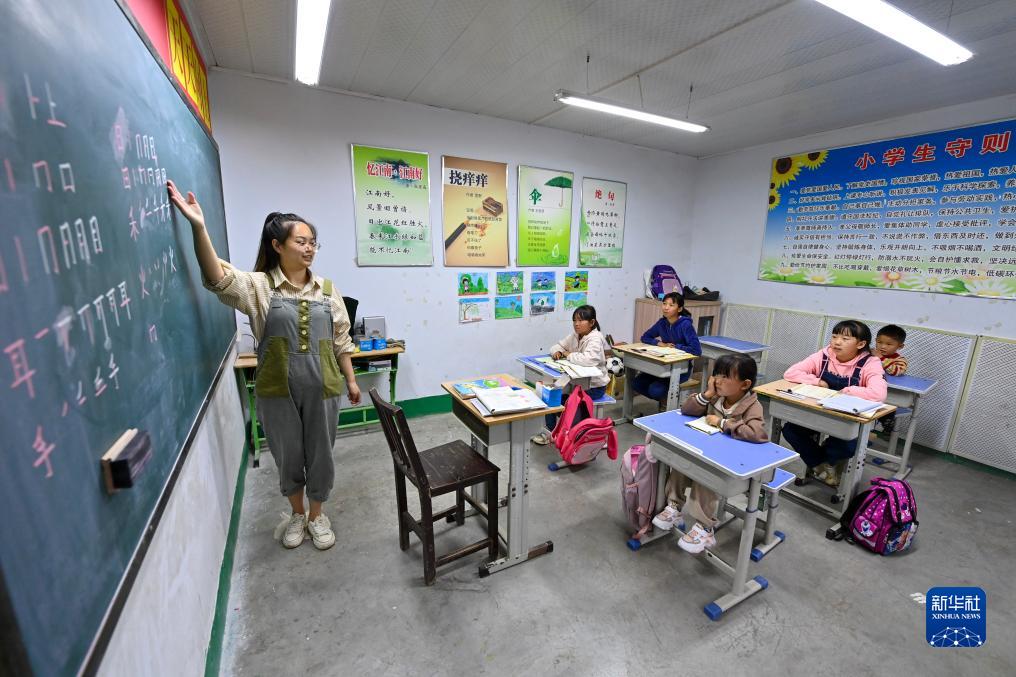 在馬武寨寄宿制小學(xué),特崗教師趙祎嬌給學(xué)生們上語(yǔ)文課(9月19日攝)。新華社記者 楊晨光 攝