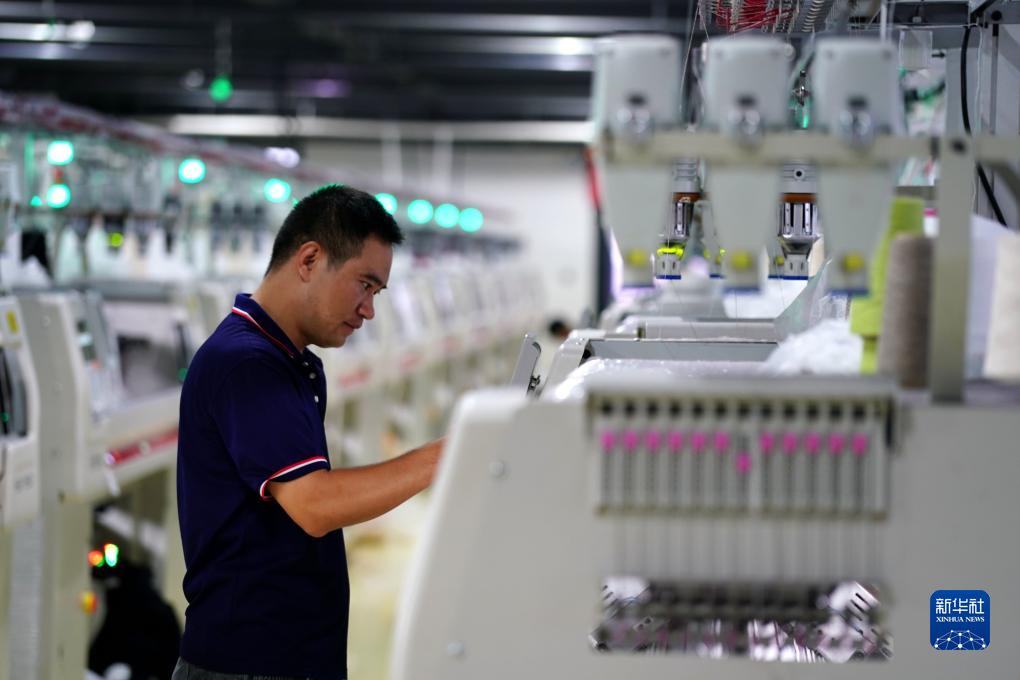 9月25日,河北省清河縣一家羊絨制品生產(chǎn)企業(yè)的工作人員在車(chē)間內忙碌。