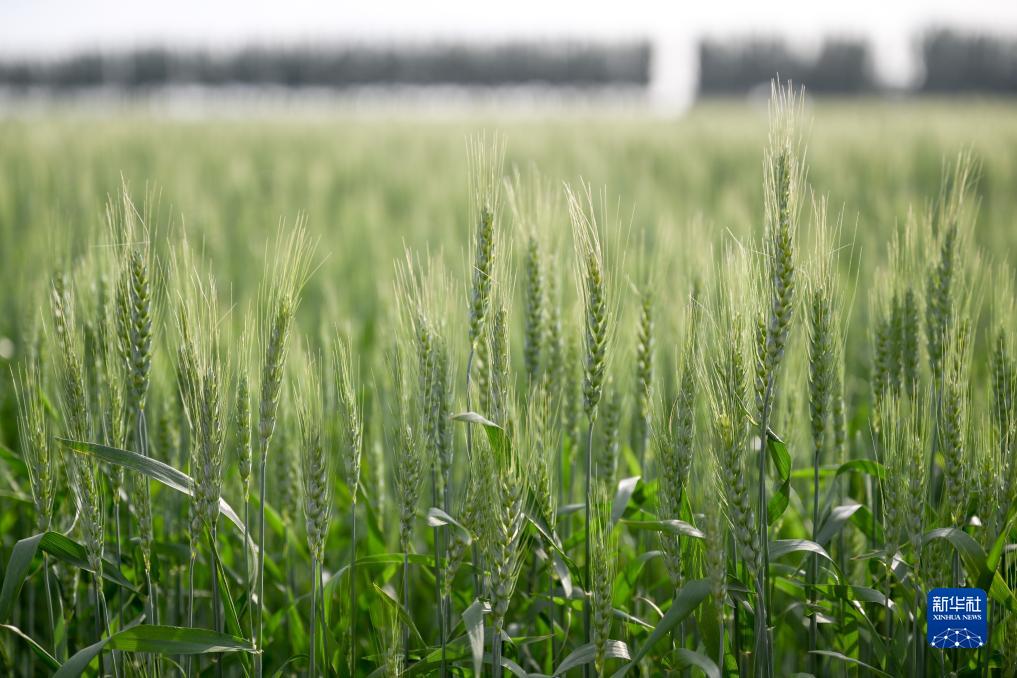 這是內蒙古巴彥淖爾市烏拉特前旗現代農業(yè)示范園區種植的小麥(6月5日攝)。
