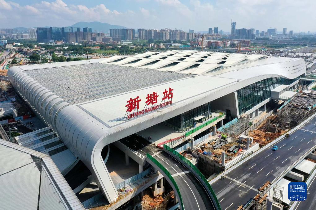 這是中鐵四局承建的廣汕高鐵新塘站(無(wú)人機照片,9月26日攝)。