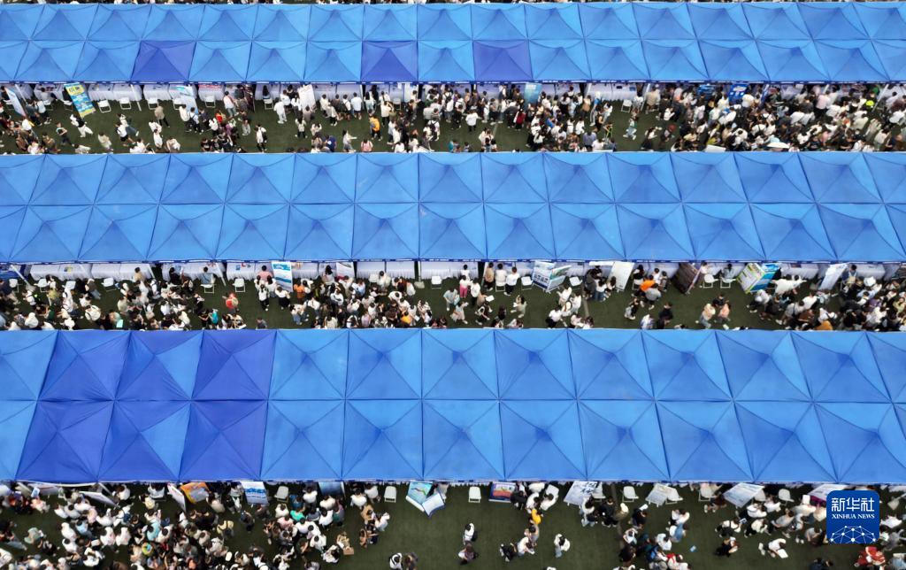 9月26日在上海建橋學(xué)院體育場(chǎng)拍攝的招聘會(huì )現場(chǎng)(無(wú)人機照片)。