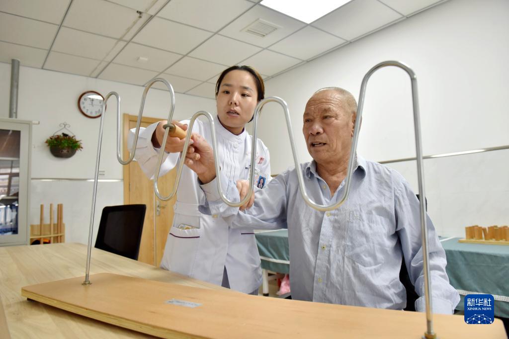 9月26日,邢臺市南和區人民醫院醫養中心工作人員協(xié)助老人進(jìn)行益智訓練。