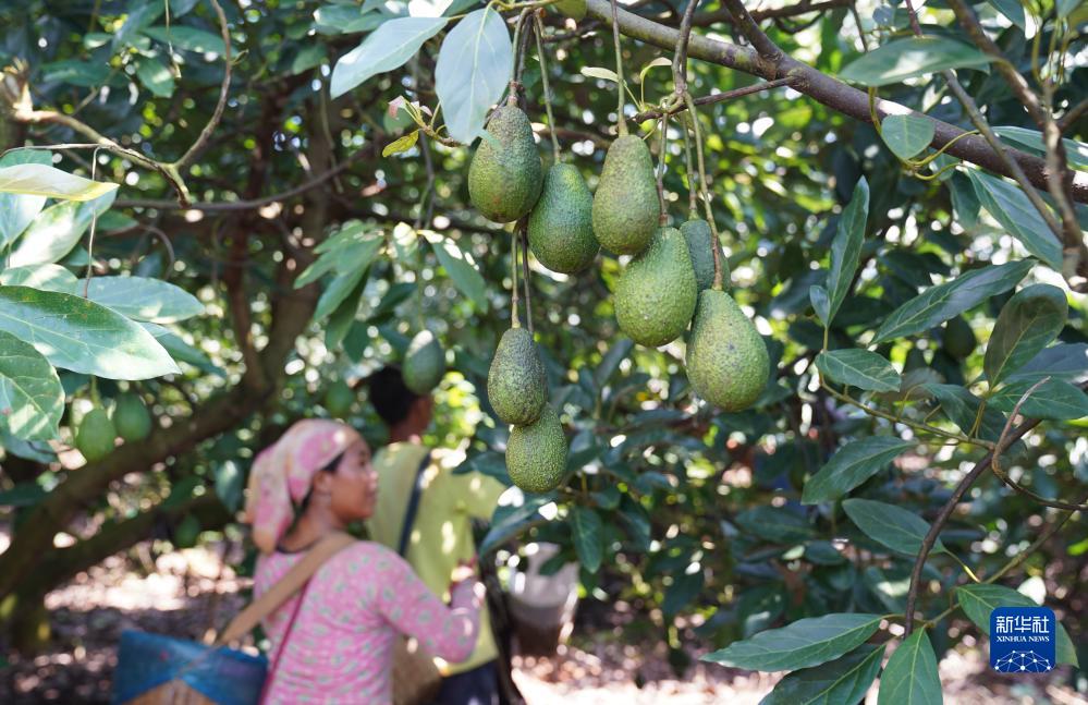 9月26日,在云南省普洱市孟連傣族拉祜族佤族自治縣娜允鎮牛油果種植基地,村民在采摘牛油果。