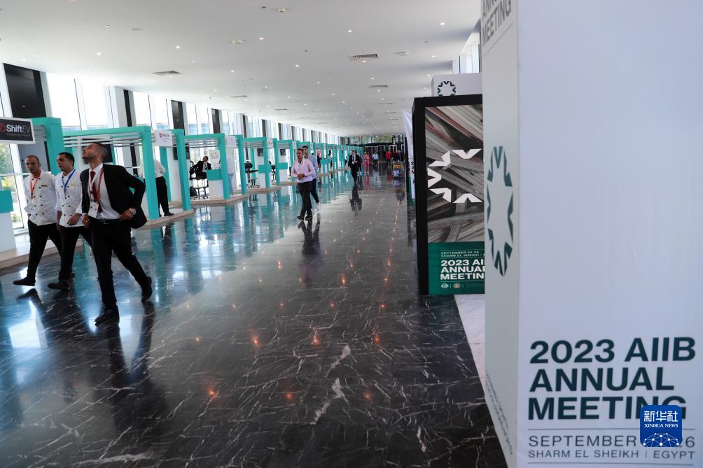 9月26日,在埃及沙姆沙伊赫,參會(huì )者走過(guò)亞投行第八屆理事會(huì )年會(huì )的展板。