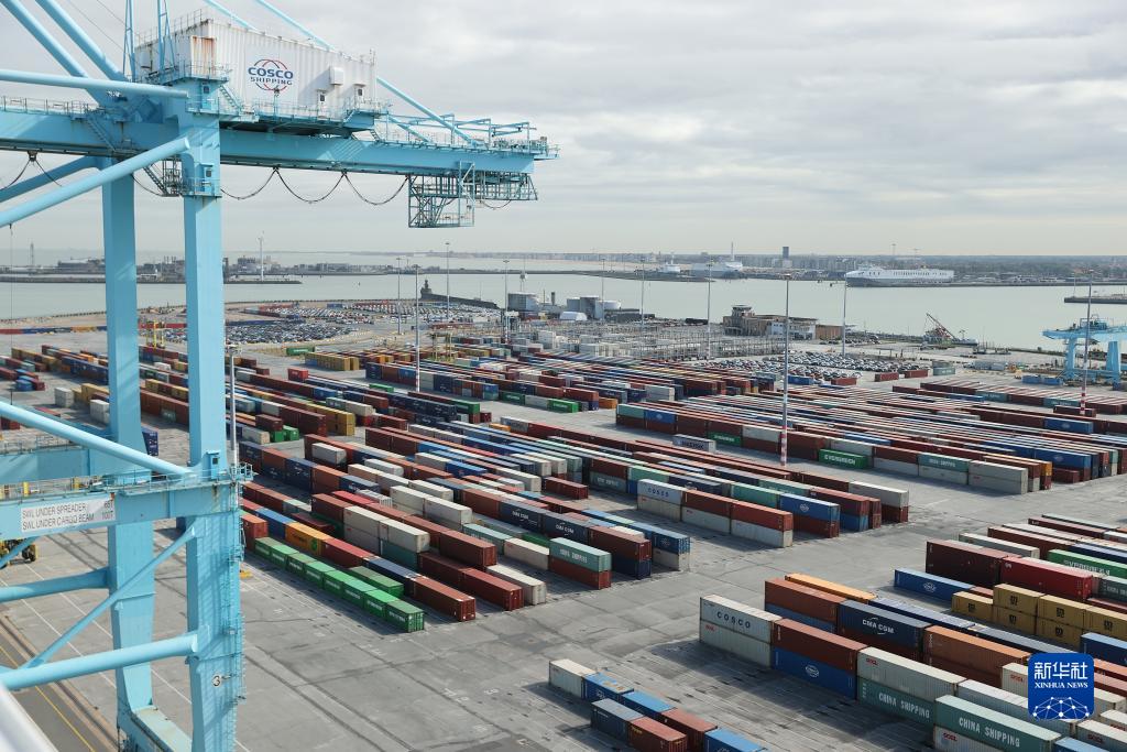 這是9月25日在比利時(shí)安特衛普-布魯日港拍攝的中遠海運(港口)澤布呂赫碼頭。