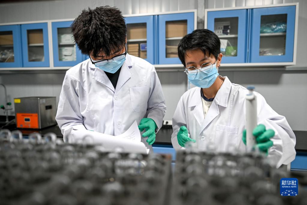 9月14日,武蓉(右)和同學(xué)處理湖水樣本。