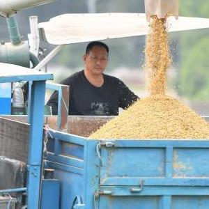 金秋時(shí)節,湖南省瀏陽(yáng)市沿溪鎮種植的中稻迎來(lái)收獲季,當地農民搶抓農時(shí)收割水稻,稻田里一派繁忙景象。