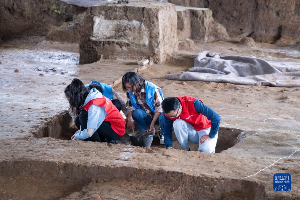 9月27日,湖北省文物考古研究院和天門(mén)市博物館的考古工作人員在石家河遺址的譚家嶺發(fā)掘現場(chǎng)進(jìn)行考古工作。