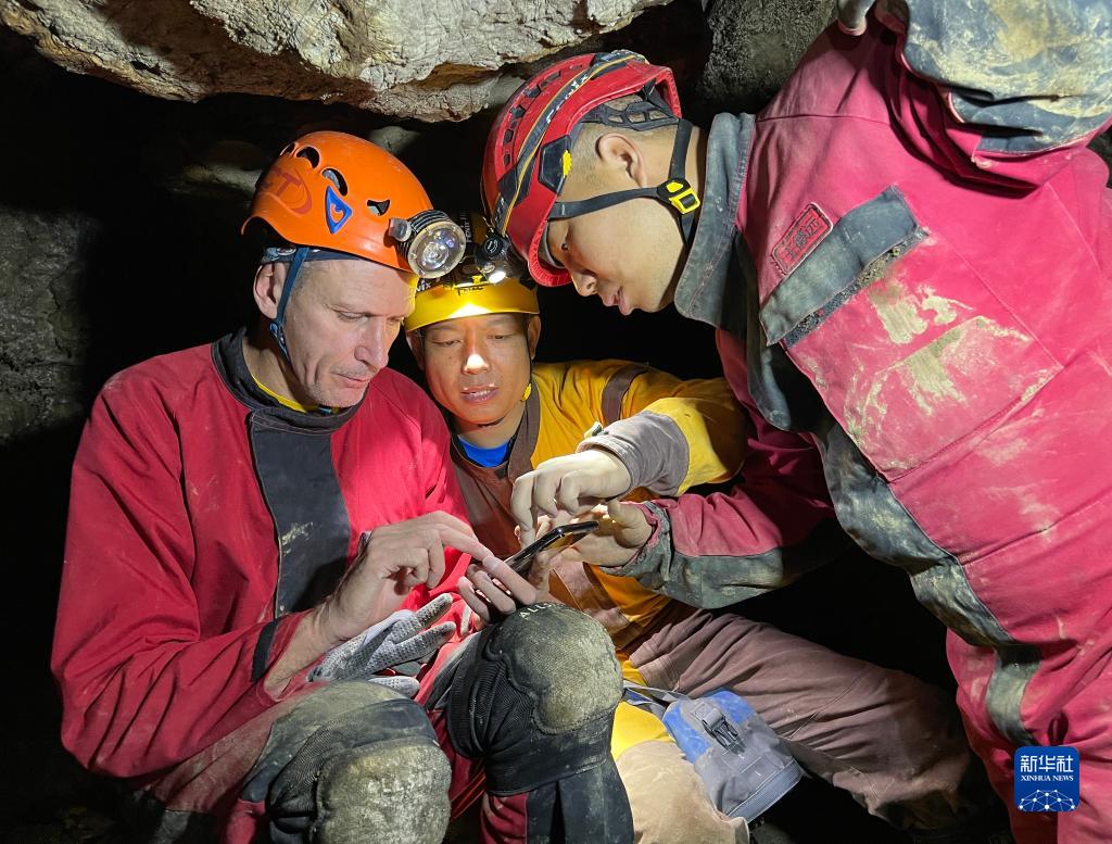 中外科考人員在貴州省雙河洞內開(kāi)展科考(9月24日攝)。