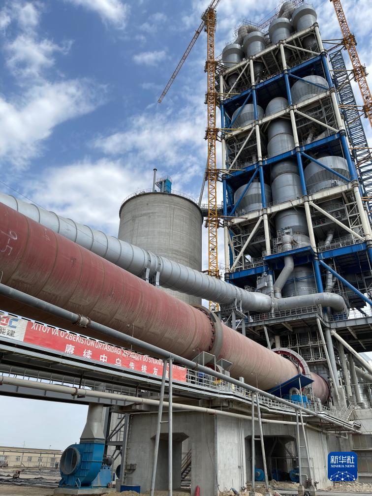這是9月16日在烏茲別克斯坦撒馬爾罕州拍攝的水泥生產(chǎn)線(xiàn)項目預熱器。