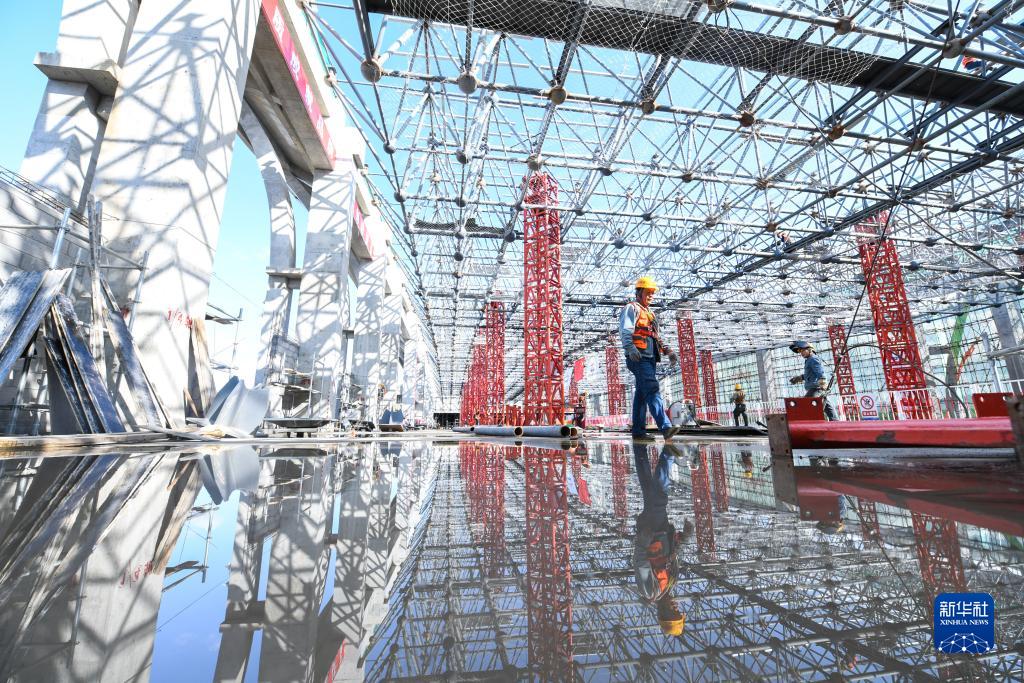 9月27日,工人在伊春西站施工現場(chǎng)作業(yè)。
