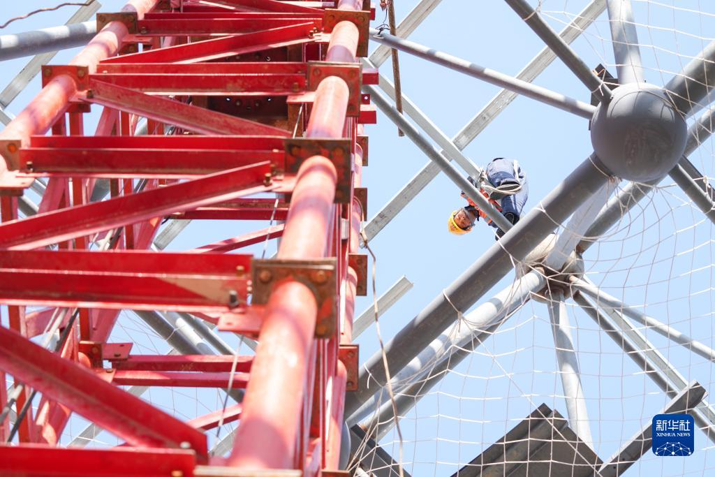 9月27日,工人在伊春西站施工現場(chǎng)作業(yè)。