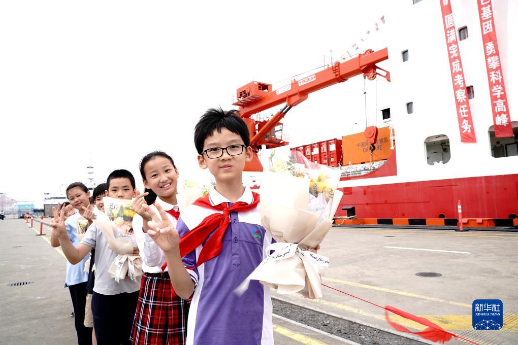 9月27日,小朋友們在碼頭歡迎中國第13次北冰洋科學(xué)考察隊凱旋。
