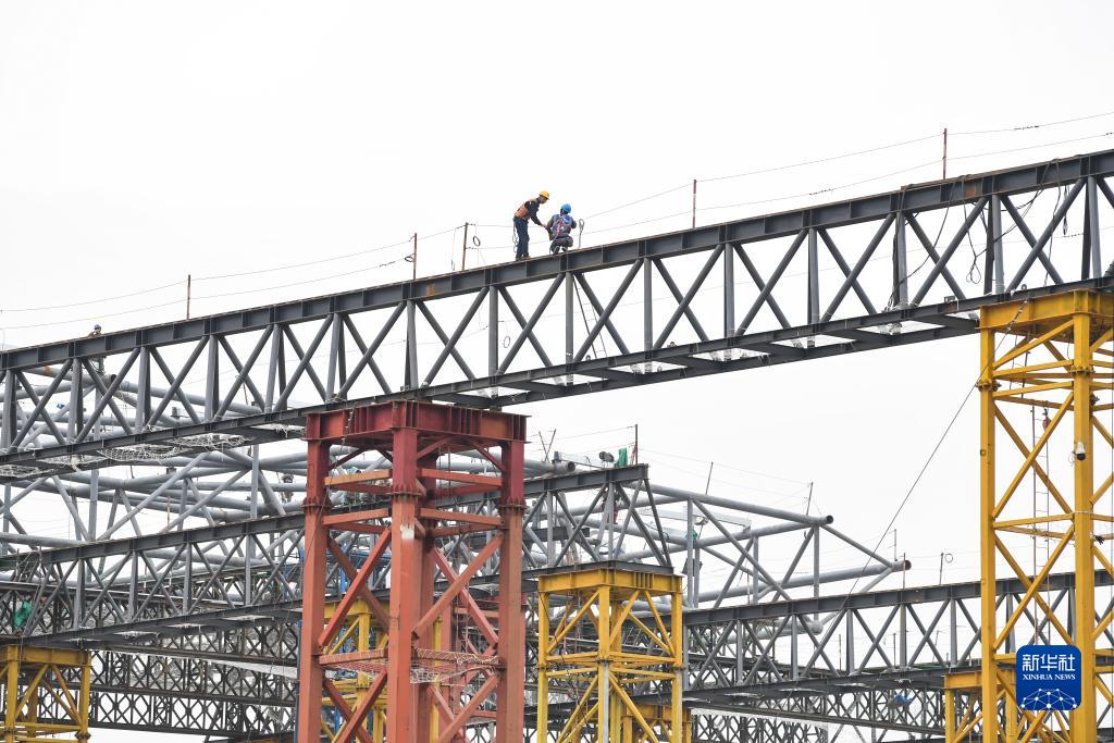 9月27日,中鐵建工工人在重慶東站站房及配套綜合交通樞紐工程二標段項目作業(yè)。
