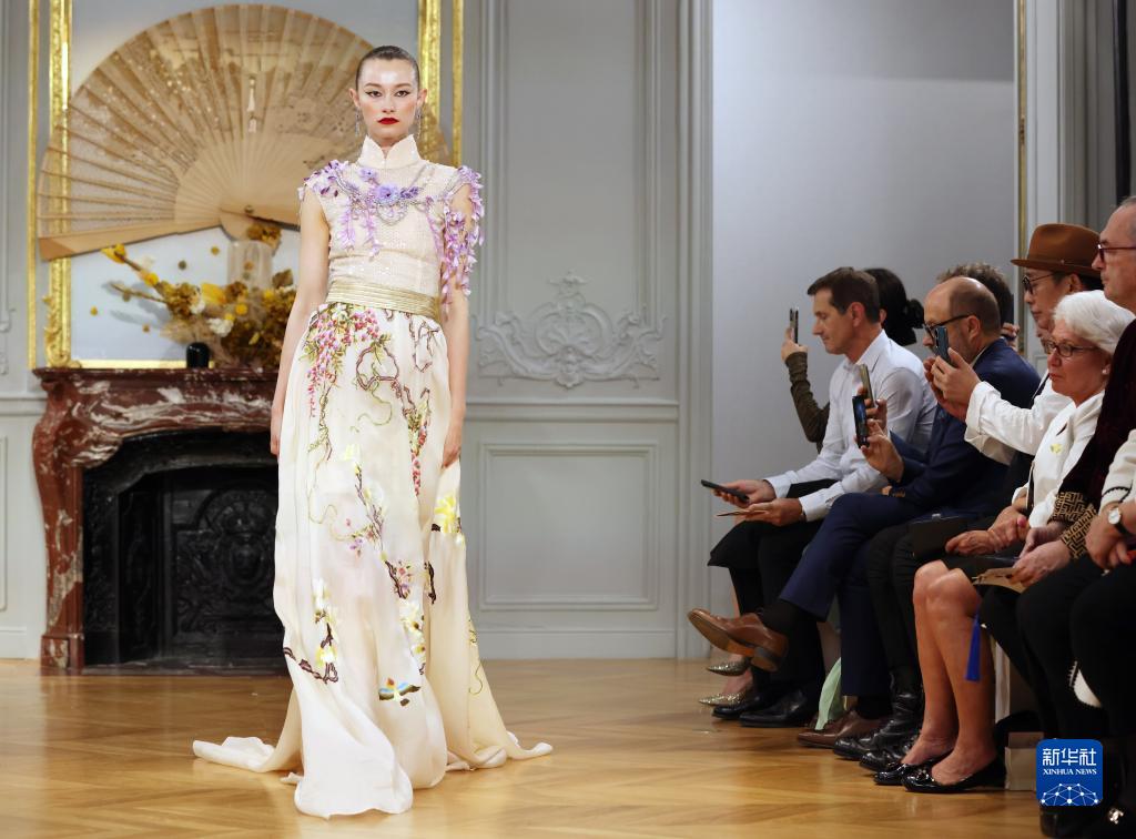 9月27日,模特在法國巴黎中國文化中心舉辦的“恭王府服飾秀”上展示設計師勞倫斯·許創(chuàng )作的恭王府系列高定服裝。