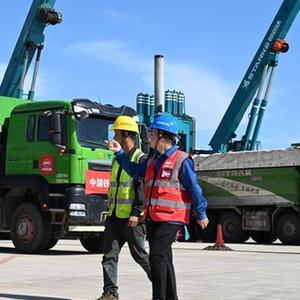 9月28日,工作人員在空客天津第二條總裝線(xiàn)項目開(kāi)工現場(chǎng)查看設備準備情況。