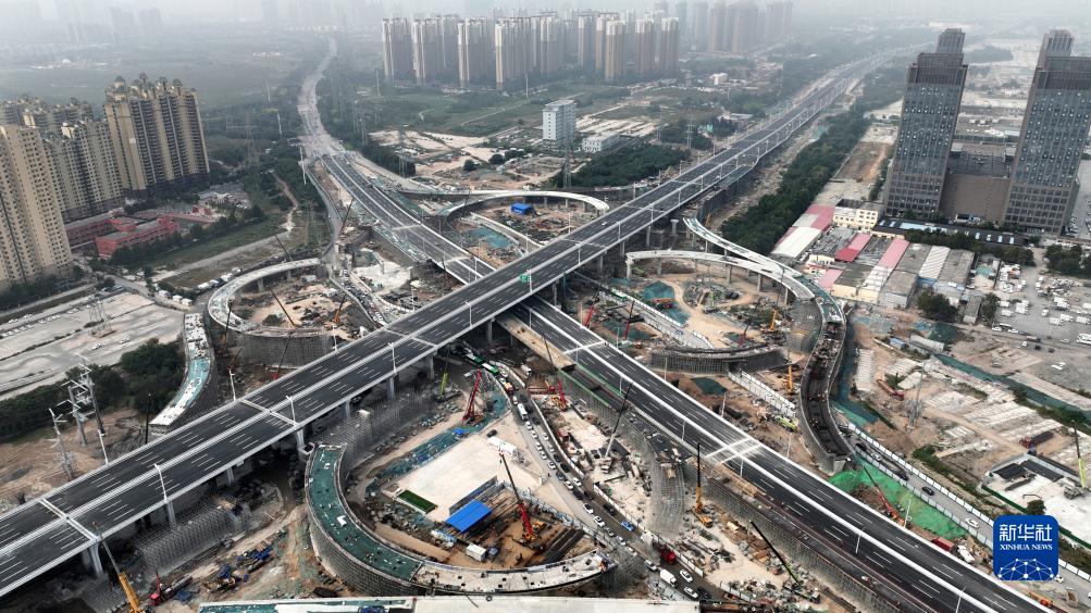這是9月28日拍攝的河北省石家莊市北三環(huán)市政化改造項目體育大街互通立交(無(wú)人機照片)。