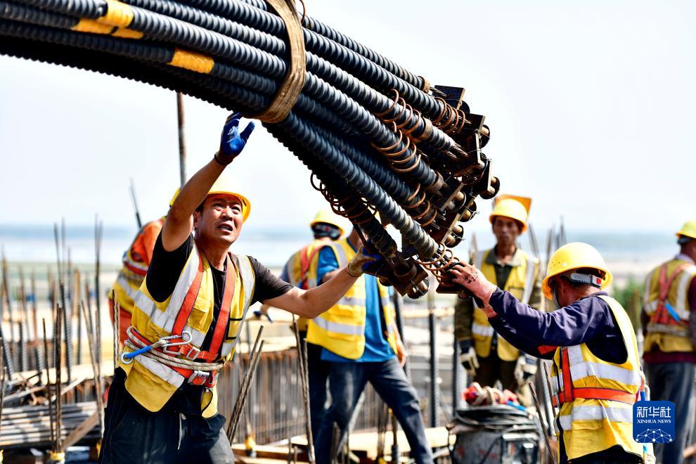 9月29日,在濟(寧)曲(阜)快速路上跨京滬鐵路立交橋項目,中鐵上海局的工作人員在忙碌作業(yè)。