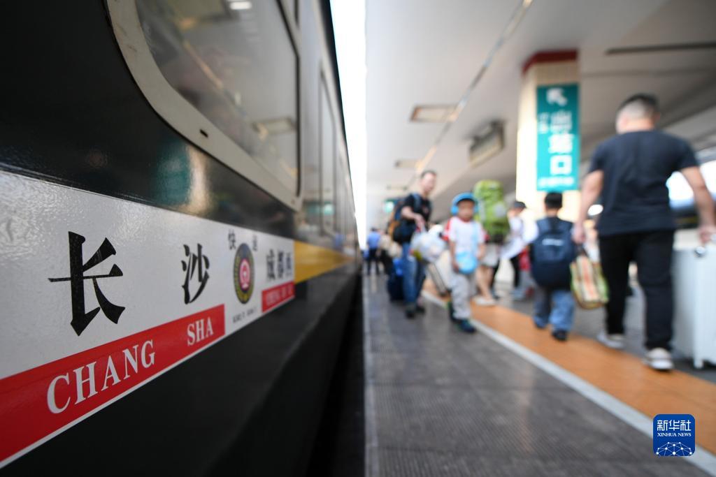 9月29日,旅客在長(cháng)沙火車(chē)站站臺準備乘車(chē)。