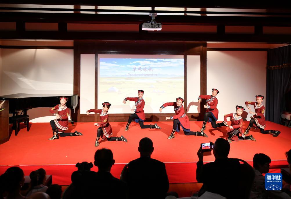 9月29日,在德國漢堡豫園,演員在中秋晚會(huì )上表演舞蹈《草原妹妹》。