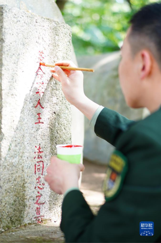 聯(lián)勤保障部隊某部開(kāi)展“緬懷先烈,銘記英雄”主題活動(dòng),組織官兵為解放福州的無(wú)名烈士墓碑描紅(9月28日攝)。