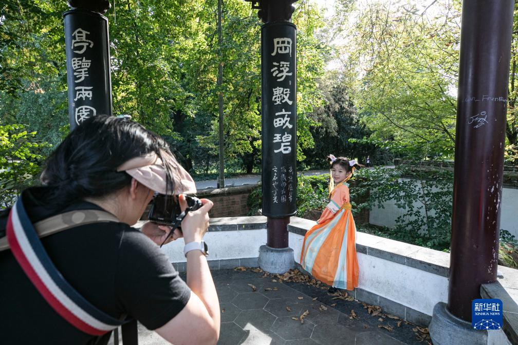中秋、國慶“雙節”到來(lái)之際,德國法蘭克福的中式園林“春華園”于9月30日舉辦漢服游園會(huì ),漢服展示、舞蹈表演、中國傳統文化體驗等多種活動(dòng)吸引了眾多游客參加。