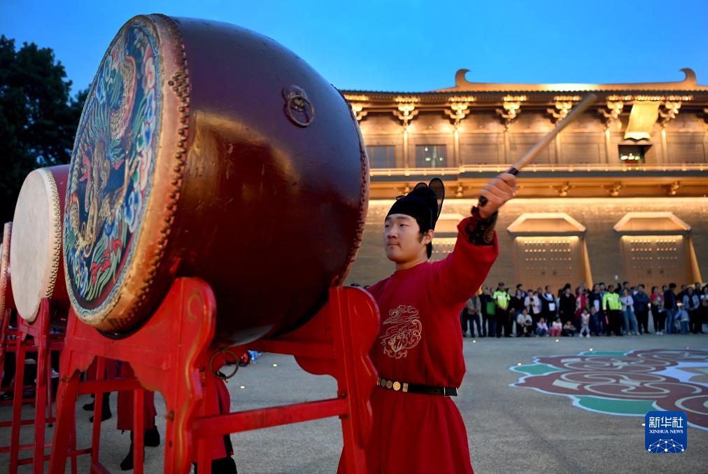 西安大明宮國家遺址公園丹鳳門(mén)前進(jìn)行的唐風(fēng)演出(9月30日攝)。