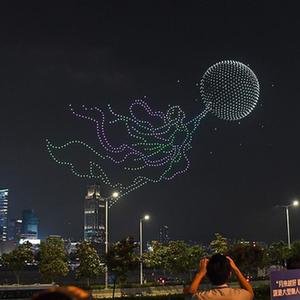 9月30日,1200架無(wú)人機從香港中環(huán)海濱騰空而起,伴隨著(zhù)流動(dòng)的圖案和變幻的造型,為“月來(lái)越好·歡樂(lè )灣區”無(wú)人機燈光秀表演揭開(kāi)了序幕。表演通過(guò)矩陣飛行把科技與藝術(shù)完美結合,向人們傳遞著(zhù)中秋、國慶的祝福。