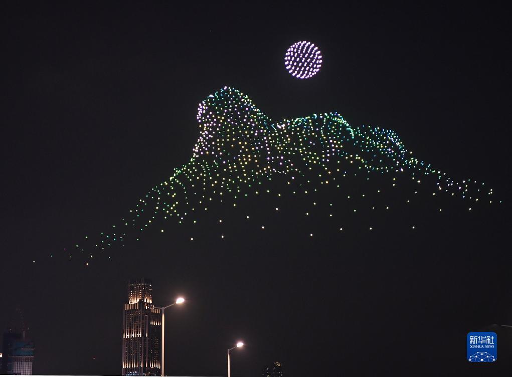 9月30日,無(wú)人機在維港上空拼成“月亮升起照亮獅子山”造型。