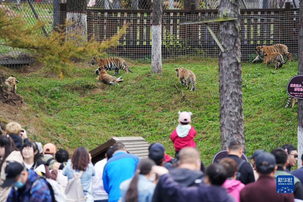 “雙節”期間,天南海北的游客來(lái)到坐落于黑龍江省海林市境內的橫道河子東北虎林園,觀(guān)虎休閑。