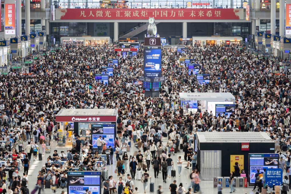 10月1日,上海虹橋火車(chē)站候車(chē)大廳里人頭攢動(dòng)。