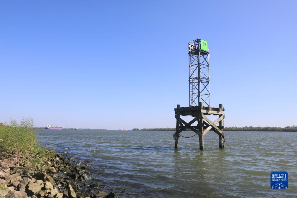 這是9月30日在美國路易斯安那州普拉克明斯地區拍攝的密西西比河69英里河段里程標記牌。