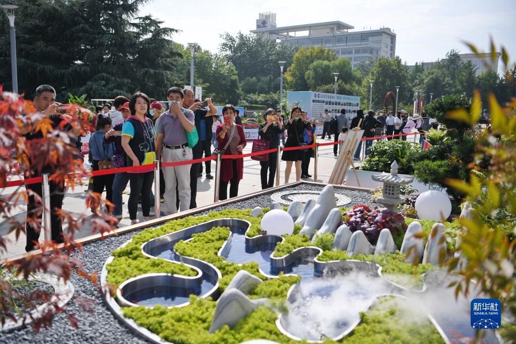 10月2日,市民和游客在石家莊市首屆園林“微景觀(guān)”制作大賽成果展上參觀(guān)。