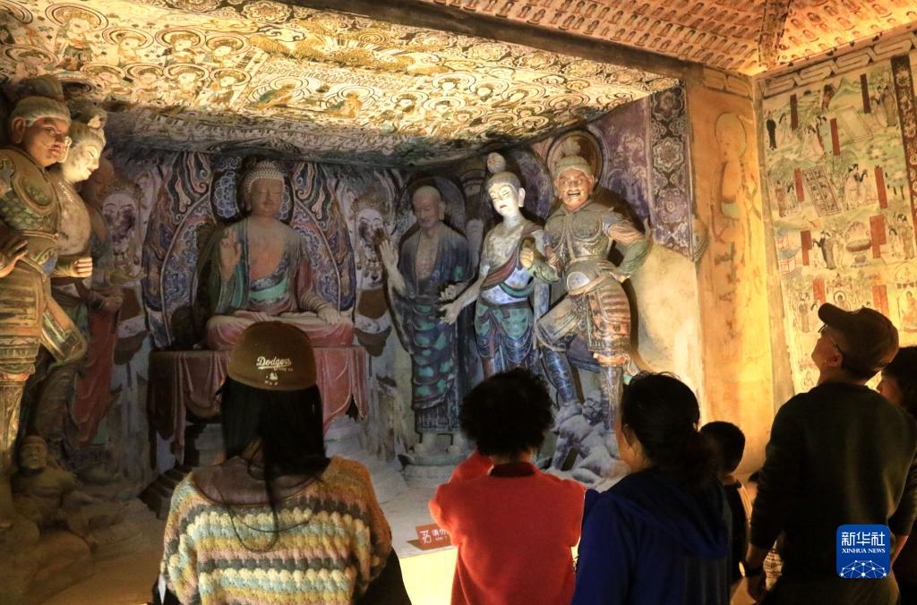 10月2日,游客在甘肅省敦煌市博物館參觀(guān)。
