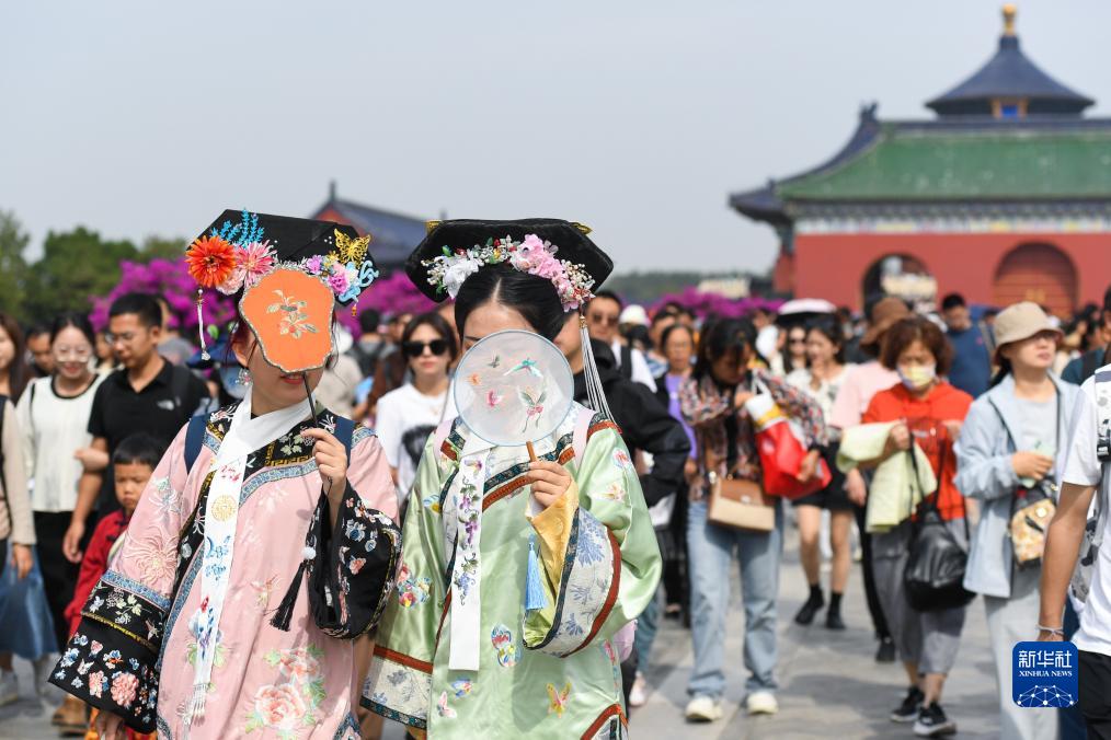 當日正值國慶假期,在北京天壇公園,來(lái)自各地的游客在這里參觀(guān)游覽。