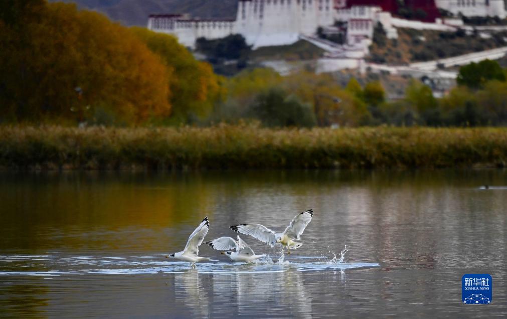 金秋十月,漁鷗在西藏拉薩市國家級自然保護區拉魯濕地里嬉戲,惹人喜愛(ài)。