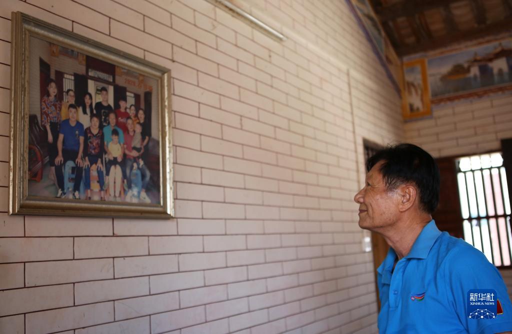 9月19日,在海南省瓊海市黃宏波老家中,黃宏波望著(zhù)墻上的全家福。黃宏波在北島工作時(shí)期,鮮少回老家。