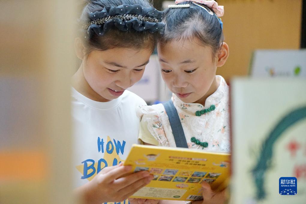 10月4日,兩名孩子在浙江省嘉興市南湖區南湖圖書(shū)館看書(shū)。