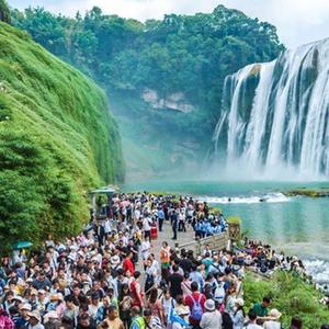 10月3日,游客在貴州省安順市黃果樹(shù)瀑布景區游玩(無(wú)人機照片)。
