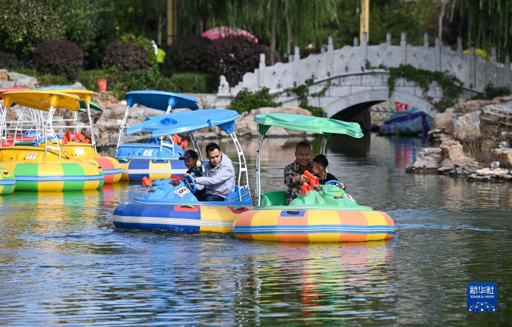 10月4日,游客在呼和浩特市新城區惱包村游玩。