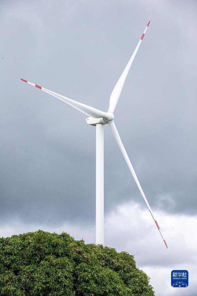 這是10月5日在泰國猜也蓬府拍攝的由中國金風(fēng)科技提供的風(fēng)力發(fā)電機。