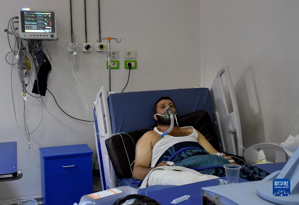 10月5日,在敘利亞中部的霍姆斯,一名受傷的男子在醫院接受治療。