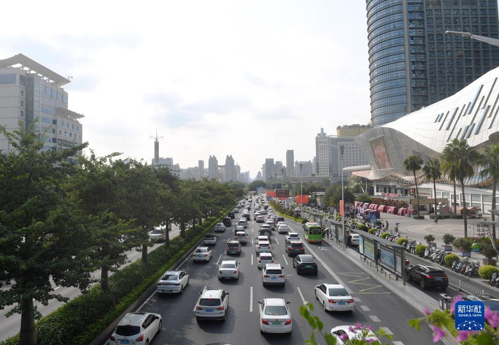 10月6日,進(jìn)城車(chē)輛行駛在廣西南寧市民族大道上。