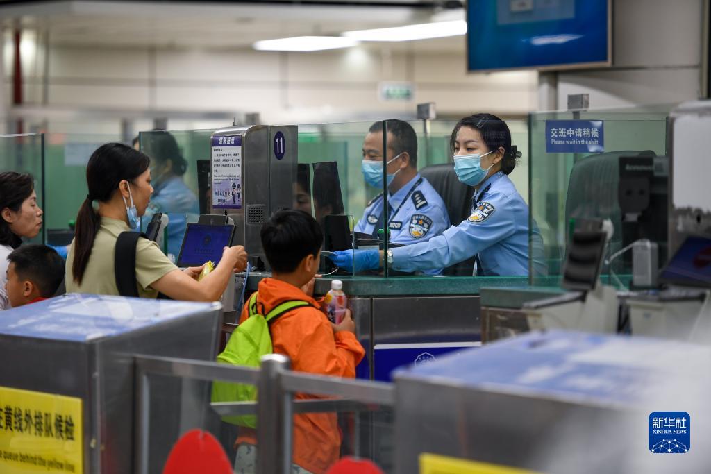 10月6日,深圳灣邊檢站民警為旅客辦理入境手續。