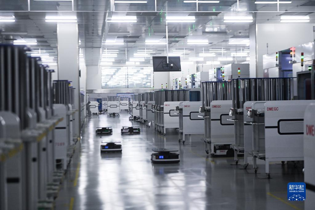 這是中國浙江東陽(yáng)橫店集團東磁股份有限公司的光伏組件數字化生產(chǎn)車(chē)間(4月18日攝)。