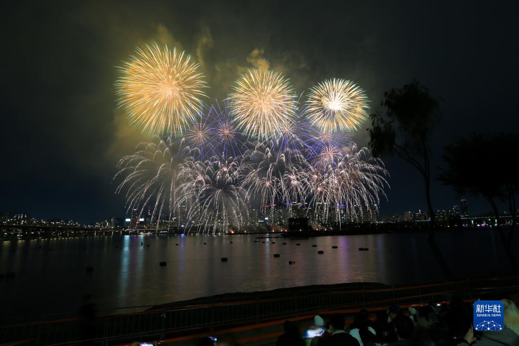 當日,首爾國際煙花節在韓國首爾汝矣島漢江公園一帶舉行,絢麗煙花點(diǎn)亮了首爾夜空。新華社記者 王益亮 攝