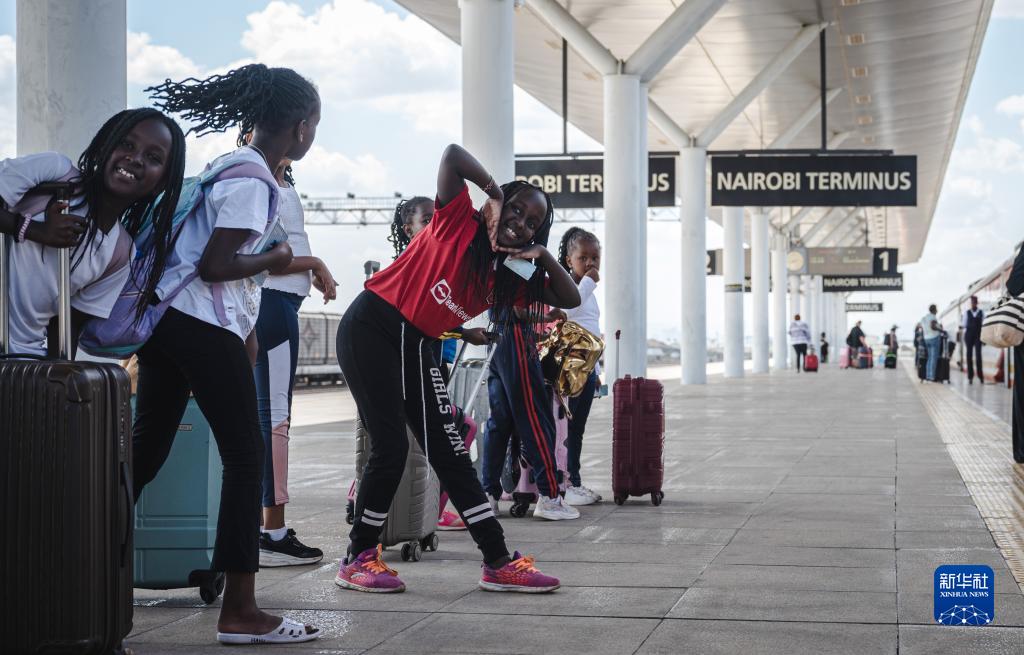 10月6日,兒童在肯尼亞內羅畢的蒙內鐵路內羅畢站內等待登車(chē)。