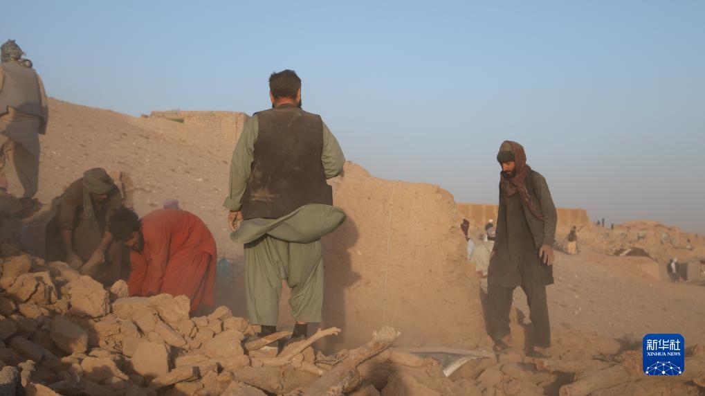 10月7日,人們在阿富汗赫拉特省進(jìn)行震后救援工作。