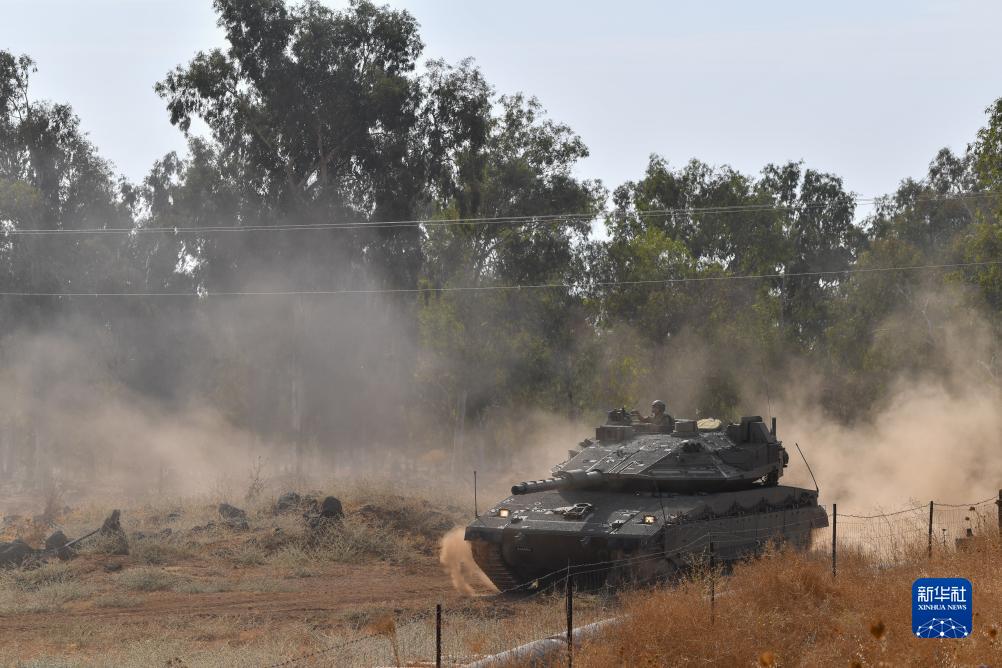 這是10月8日在以色列北部靠近黎巴嫩的邊境區域拍攝的以色列坦克。