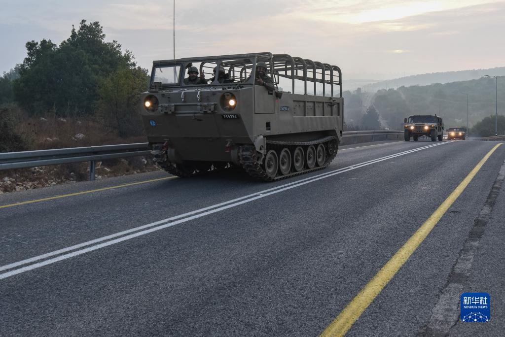 10月8日,以色列軍用車(chē)輛在北部靠近黎巴嫩邊境區域的道路上行駛。